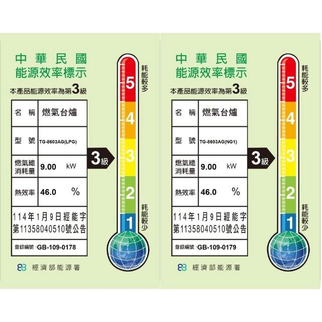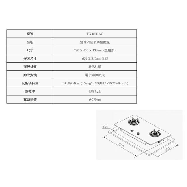莊頭北TG-8603AG 安全定時大面板檯面爐 瓦斯爐 限定區域送基本安裝