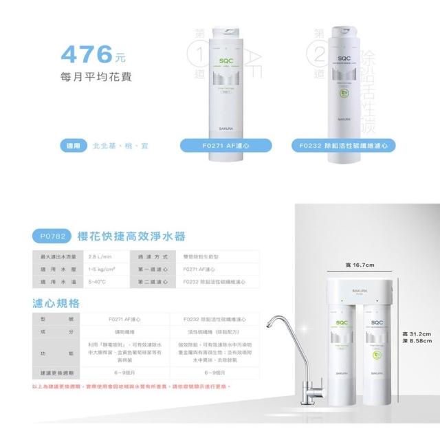 SAKURA 櫻花P0782 快捷高效 淨水器 除鉛生飲型 限定區域送基本安裝