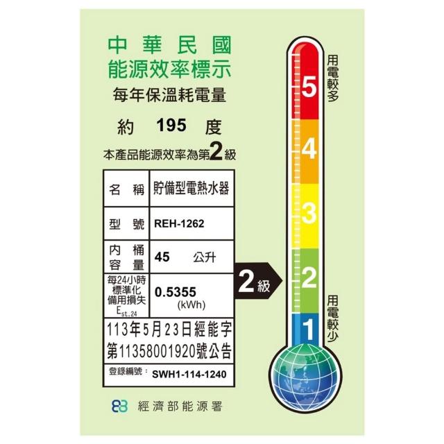 林內REH-1262 12加侖 壁掛式 儲熱式電熱水器 不鏽鋼內桶 限定區域送基本安裝