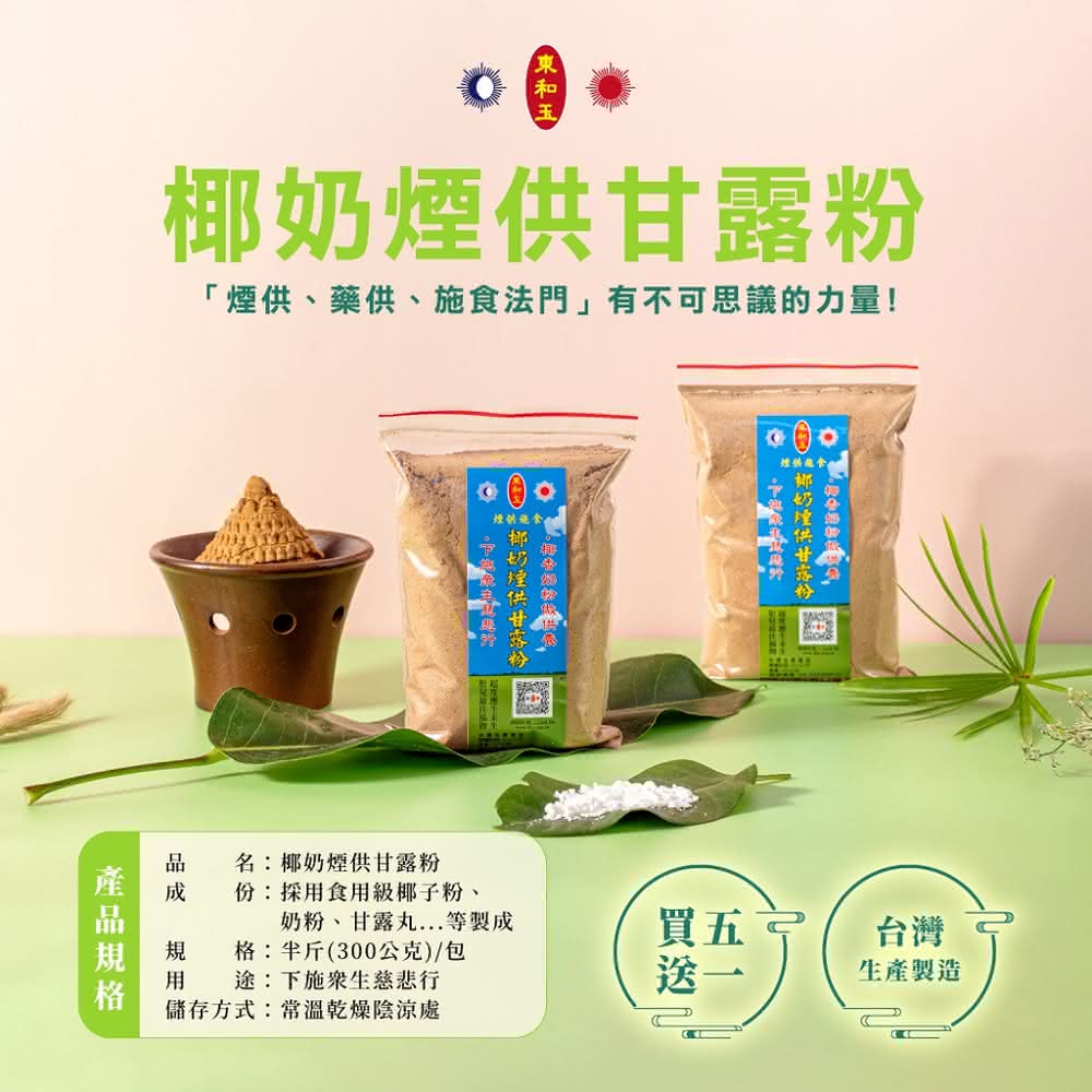 東和玉椰奶煙供甘露粉 買五送一(台灣生產製造 天然原料 煙供 施食)