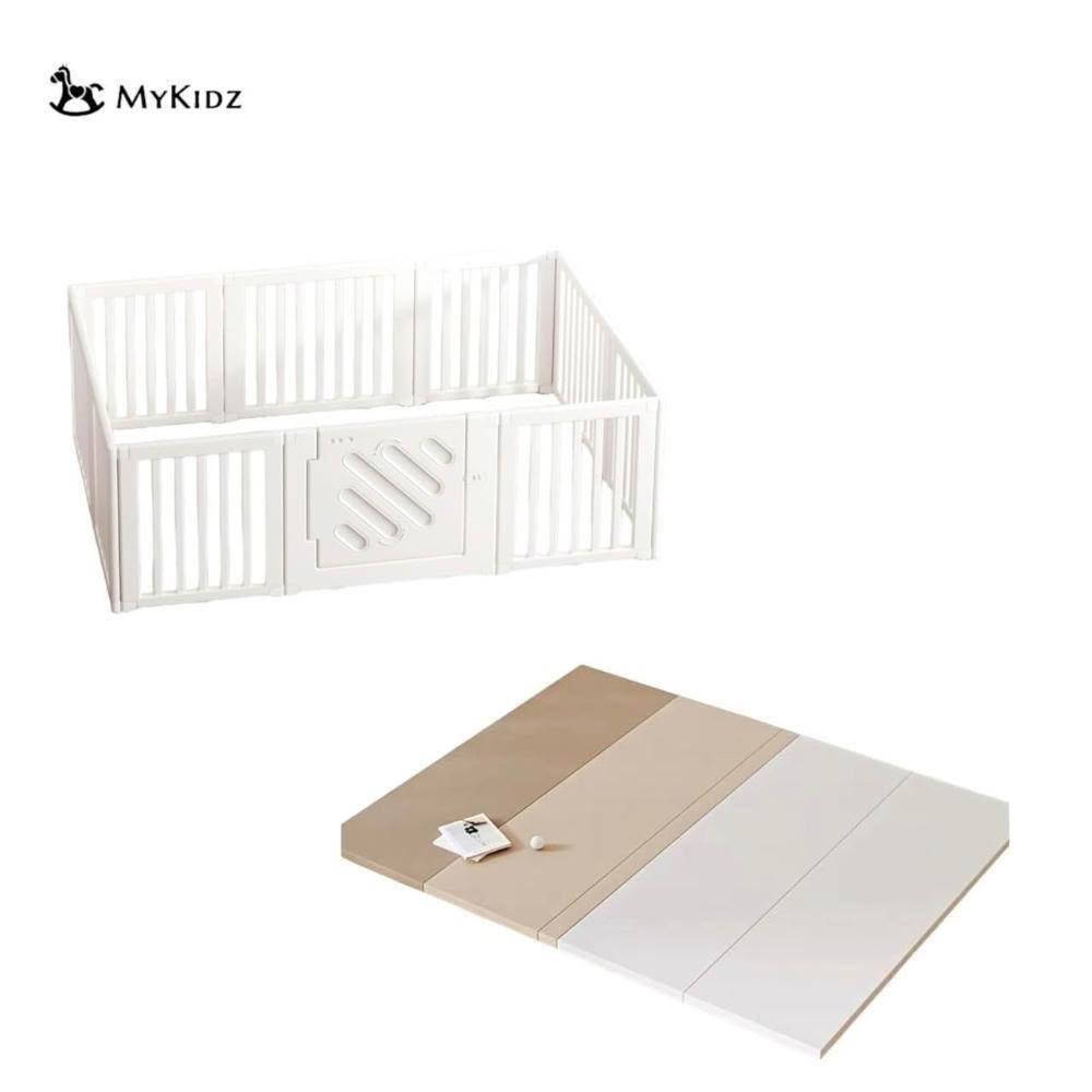 Mykidz兒童安全圍欄高68公分+🇹🇼台灣製地墊 (極簡圍欄/學步圍欄 /收納架模式)