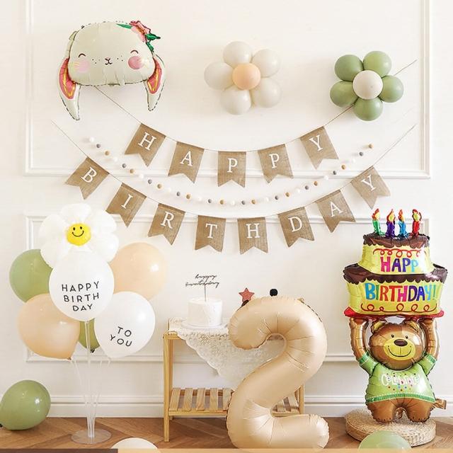 PARTY FUN(快速到貨)麻布拉旗小熊套組(生日 慶生 生日數字 生日道具 生日拉旗 派對氣球 週歲 抓周佈置 週歲佈置)