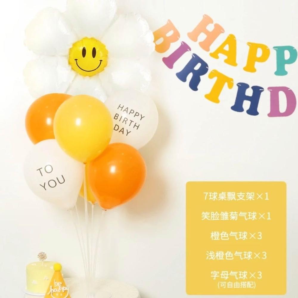 PARTY FUN(快速到貨 )笑臉雛菊+九顆氣球桌飄套組B(生日佈置 氣球桌飄 派對佈置 桌飄)