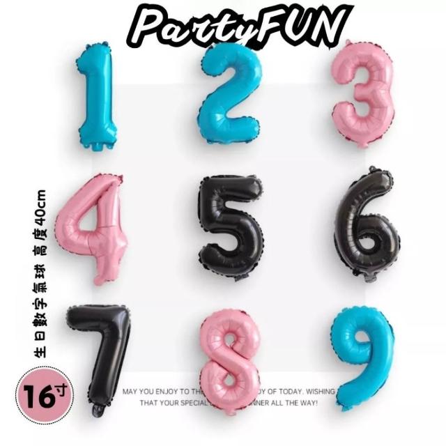 PARTY FUN(快速到貨 )INS熱銷款 數字氣球 彩色數字氣球 16寸生日數字氣球 生日數字氣球