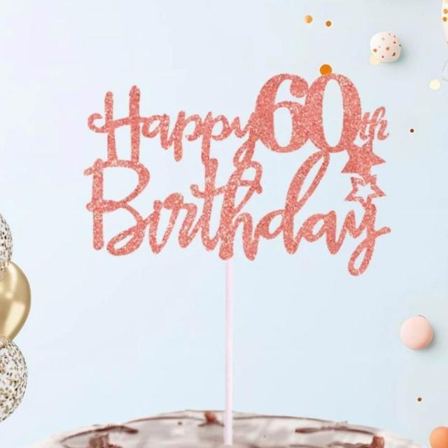 PARTY FUN(快速到貨)專屬60歲繽紛蛋糕插 數字蛋糕插 蠟燭 玫瑰金蛋糕插 金色蛋糕插 蛋糕插 數字蛋糕插件