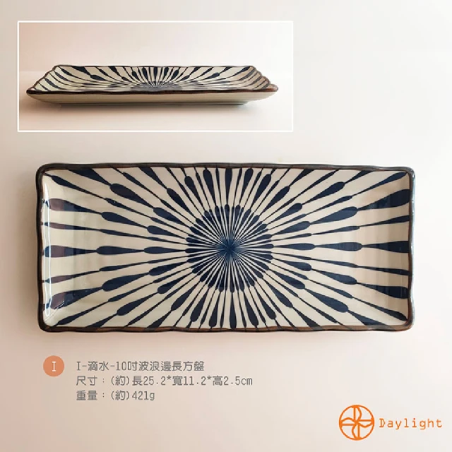 Daylight日式滴水陶瓷系列-25cm波浪邊長方盤陶瓷盤 盤子 可微波 沙拉盤 菜盤 點心盤 入厝禮 新婚禮