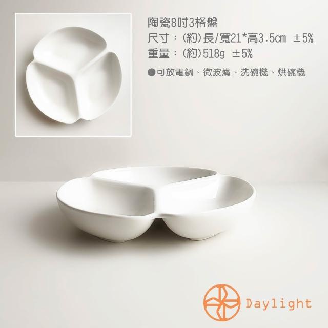 Daylight陶瓷分格盤-21cm三格盤1入分隔盤 3格盤 水果盤 炸物盤 陶瓷盤 盤子 可微波 餐盤 沙拉盤