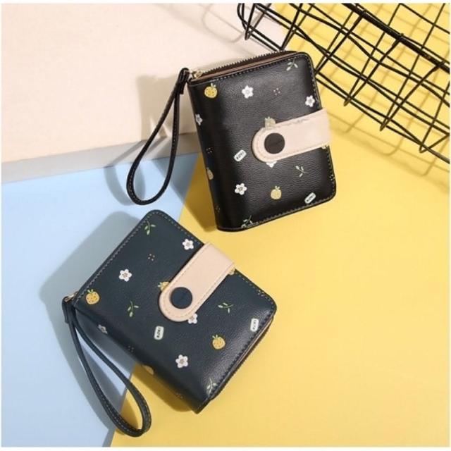COYOUKI新款短款錢包 小巧超薄可愛 印花零錢包 日系2折學生錢夾 小清新 學生拉鍊零錢包 短夾 水果短夾(ins)