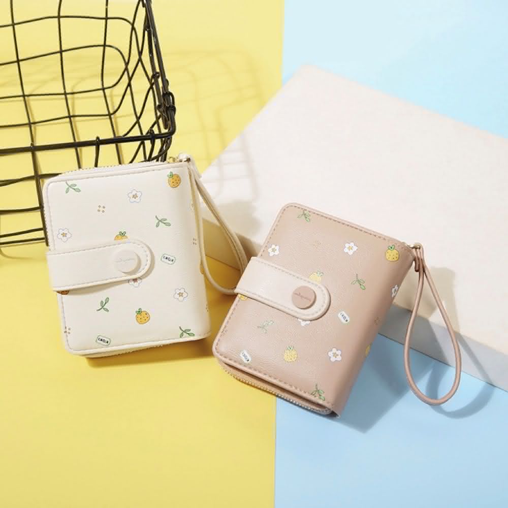 COYOUKI新款短款錢包 小巧超薄可愛 印花零錢包 日系2折學生錢夾 小清新 學生拉鍊零錢包 短夾 水果短夾(ins)
