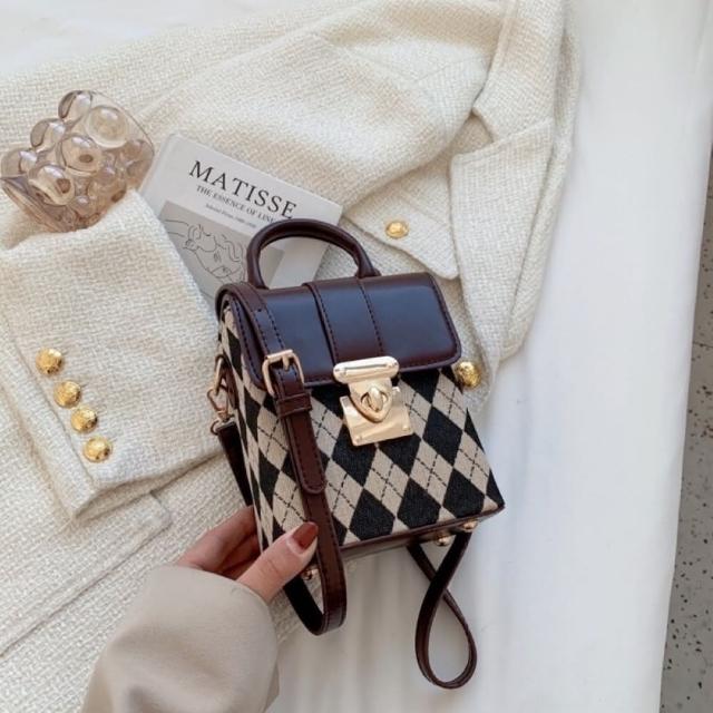 COYOUKI菱格紋包 潘朵拉の寶盒 焦糖感小方盒 包包 網紅款 棋盤格 高質感 側背包 肩背包 手提包(ins)