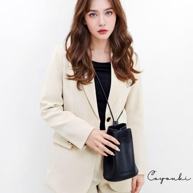 COYOUKI抽繩水桶包 2025新款真皮女包 簡約斜肩包 頭層牛皮肩包