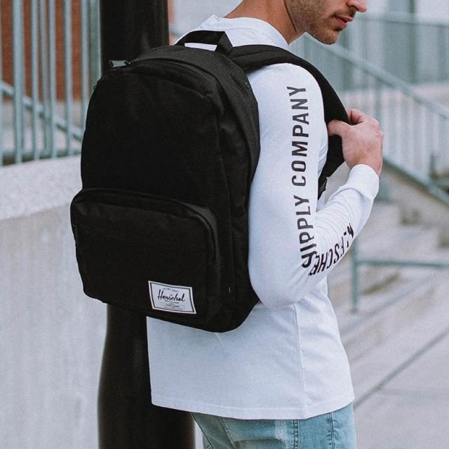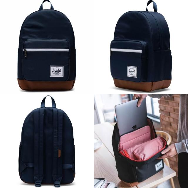 HerschelPop Quiz 大型 黑色 深藍 帆布底 防潑水 筆電夾層 大學 書包 學生 男生 女生 背包 後背包