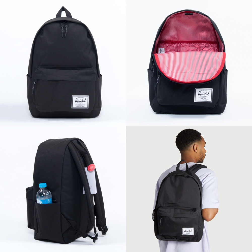 HerschelClassic XL 特大 黑色 全黑 帆布 防潑水 尼龍內裡 可放水壺 大容量 書包 男女 背包 後背包