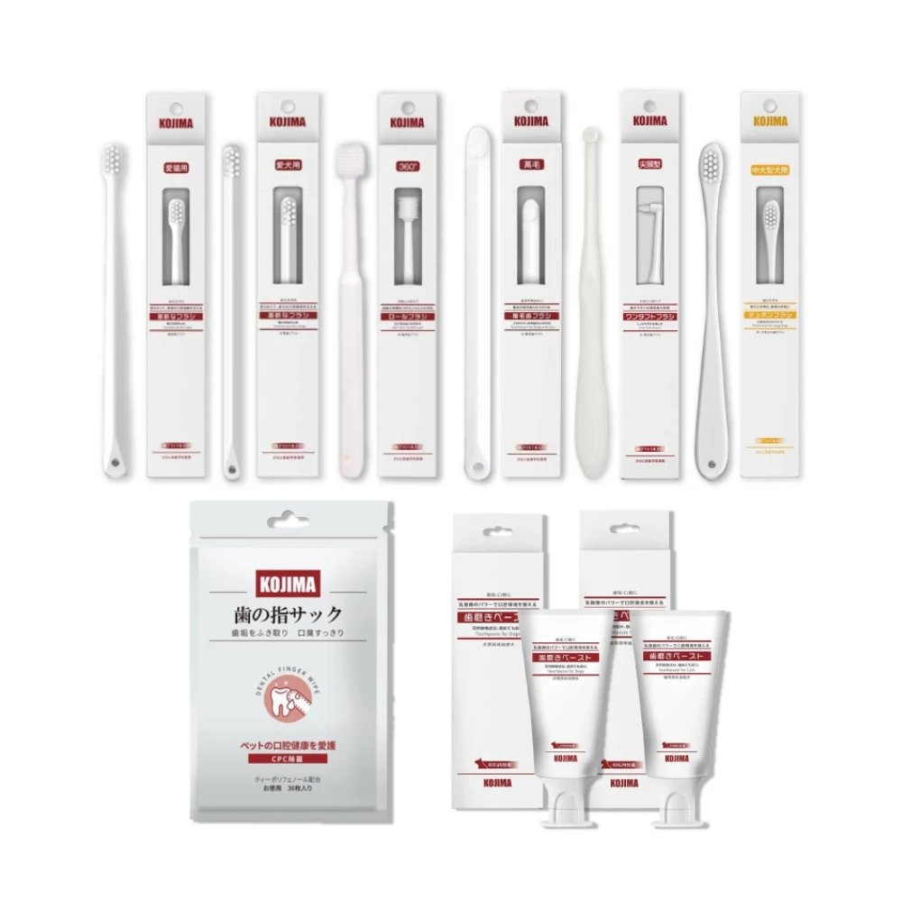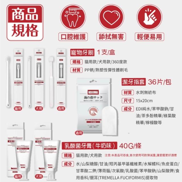 KOJIMA寵物牙刷 寵物牙膏(狗牙刷 貓用牙刷 狗牙膏 貓牙膏 尖頭牙刷 萬毛牙刷 360度牙刷 潔牙指套)