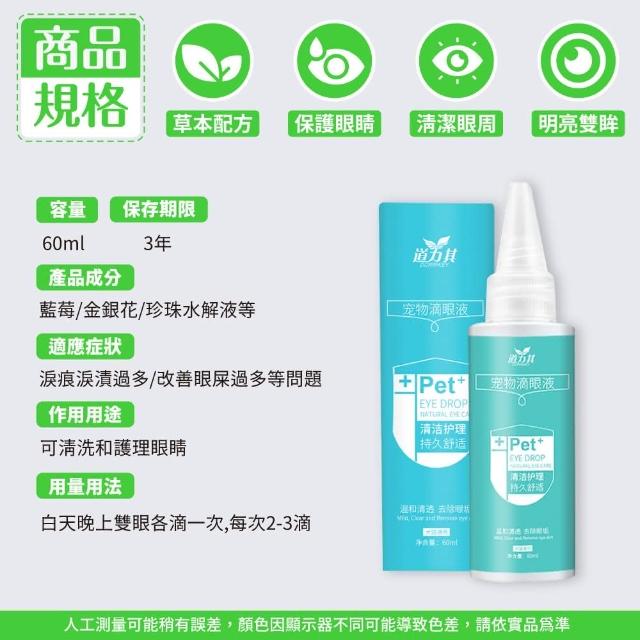道力其寵物滴眼液 60ml(狗狗滴眼液 寵物去淚痕 眼部清潔 寵物用品 狗狗去淚痕 去除淚痕)
