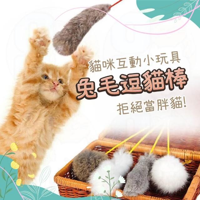 兔毛球逗貓棒(兔毛條逗貓棒 兔毛逗貓棒 貓咪玩具 貓玩具 毛條逗貓棒 逗貓棒 寵物玩具)
