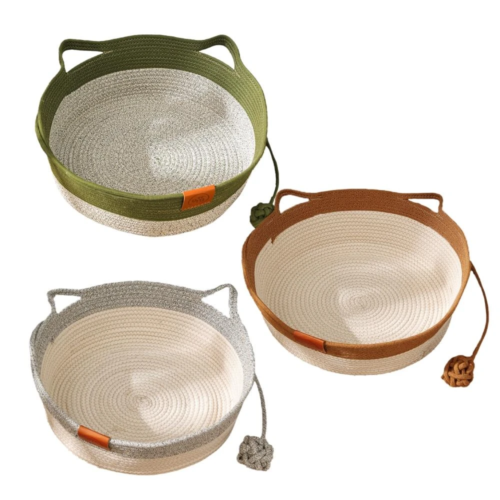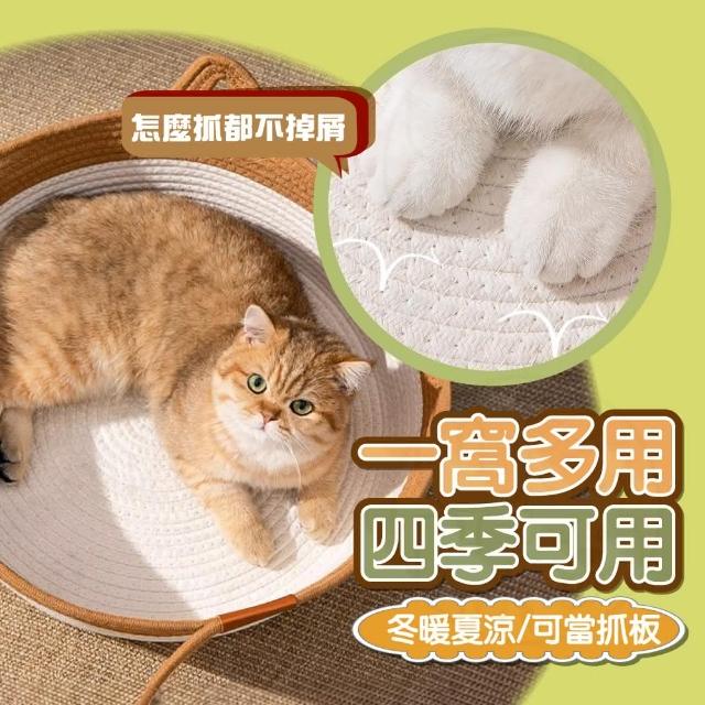 棉麻圓窩 圓形藤編貓窩 貓咪睡窩 肥貓窩 不掉屑圓窩 耐抓窩 麻球圓型窩 大貓窩 寵物睡覺窩