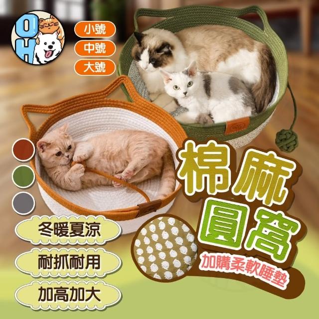 棉麻圓窩 圓形藤編貓窩 貓咪睡窩 肥貓窩 不掉屑圓窩 耐抓窩 麻球圓型窩 大貓窩 寵物睡覺窩