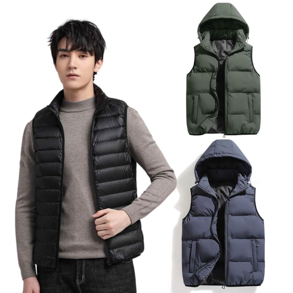 JP台灣現貨 可收納 輕羽絨背心 男士鴨絨背心 秋冬季休閒羽絨馬甲背心 保暖羽絨外套 時尚男背心 立領馬甲 防風外套 背心