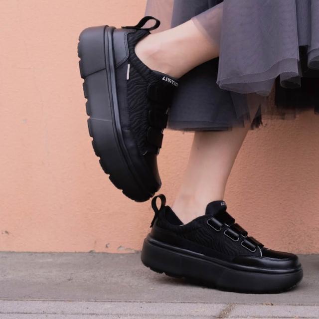 Ustini我挺你健康鞋 厚底鬆糕鞋-女款-黑色(魔鬼氈透氣牛皮休閒鞋UEX2008BKB)
