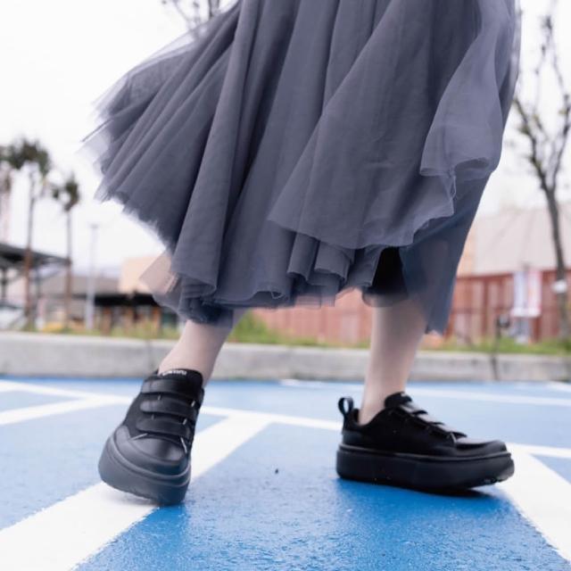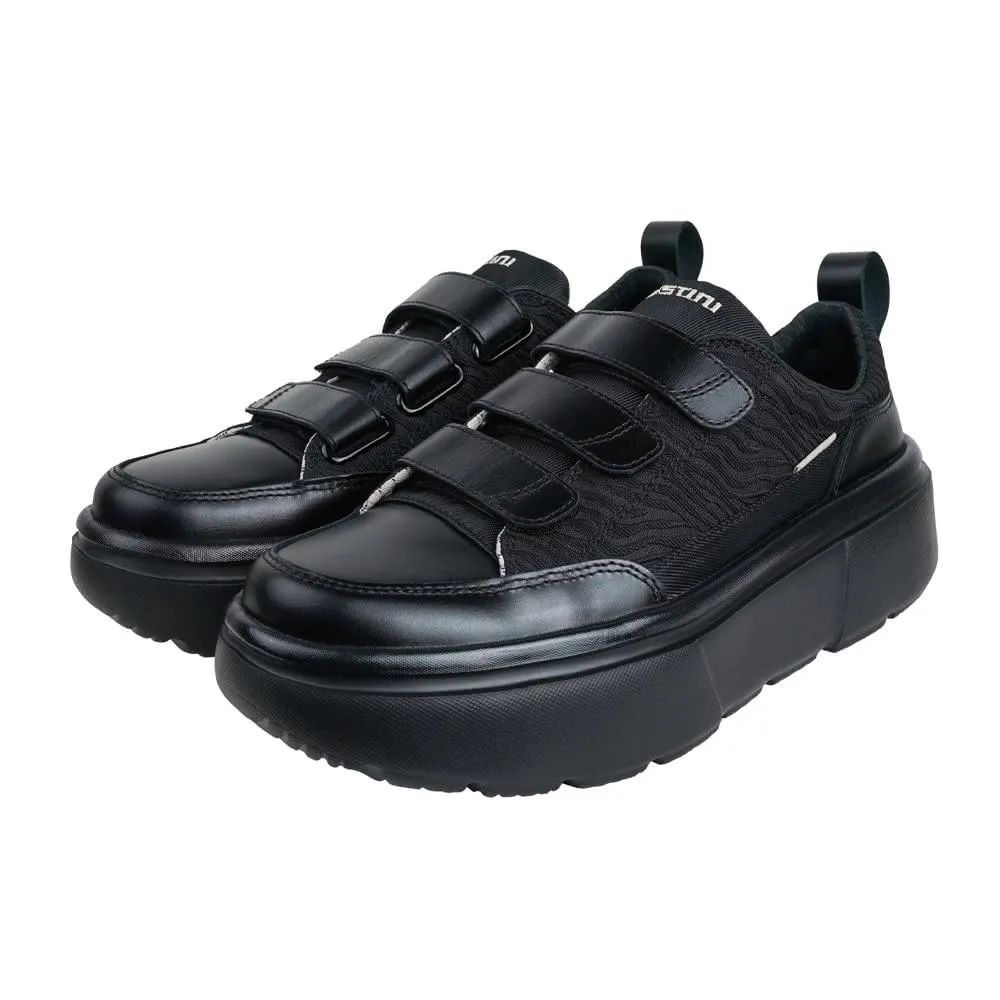 Ustini我挺你健康鞋 厚底鬆糕鞋-女款-黑色(魔鬼氈透氣牛皮休閒鞋UEX2008BKB)