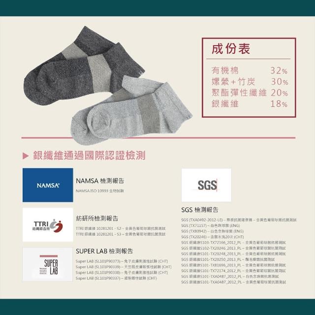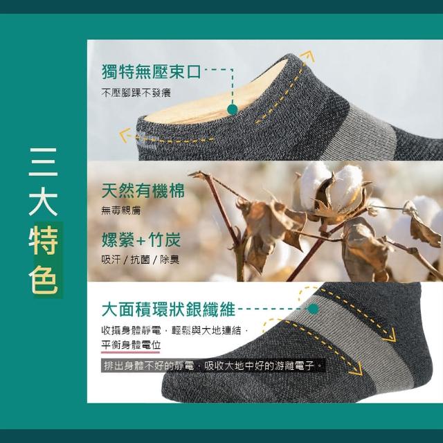 Ustini排靜電有機棉襪(12双)-短襪-天然有機棉-吸濕-抗菌-竹炭銀纖維排靜電機能襪UAS0001LGY