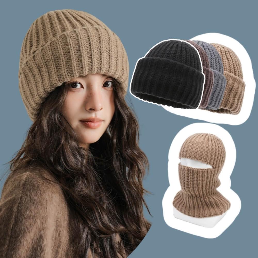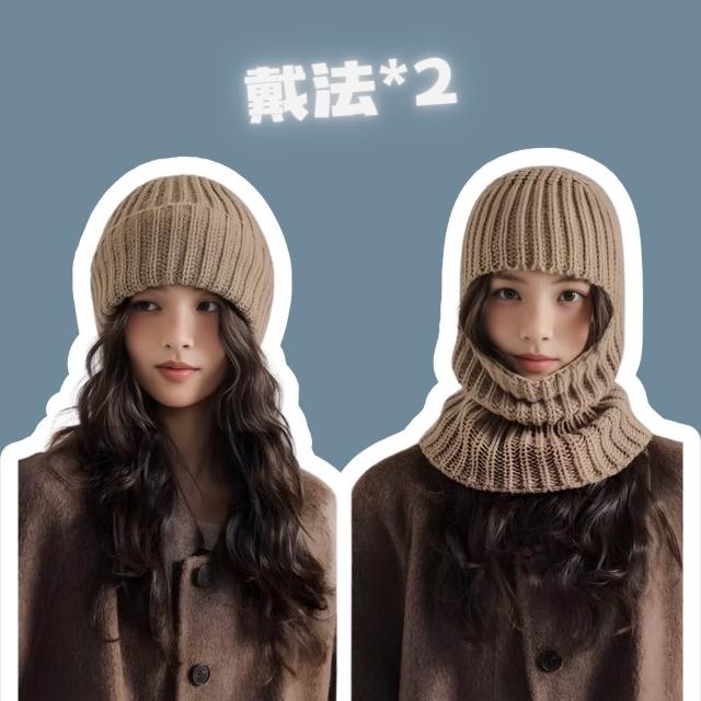 台灣現貨 兩種戴法 粗針針織 套頭 圍脖 一體 毛帽|秋冬 保暖針織 包頭帽 護耳 滑雪帽 巴拉克拉法帽