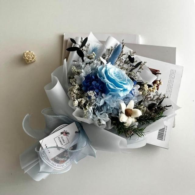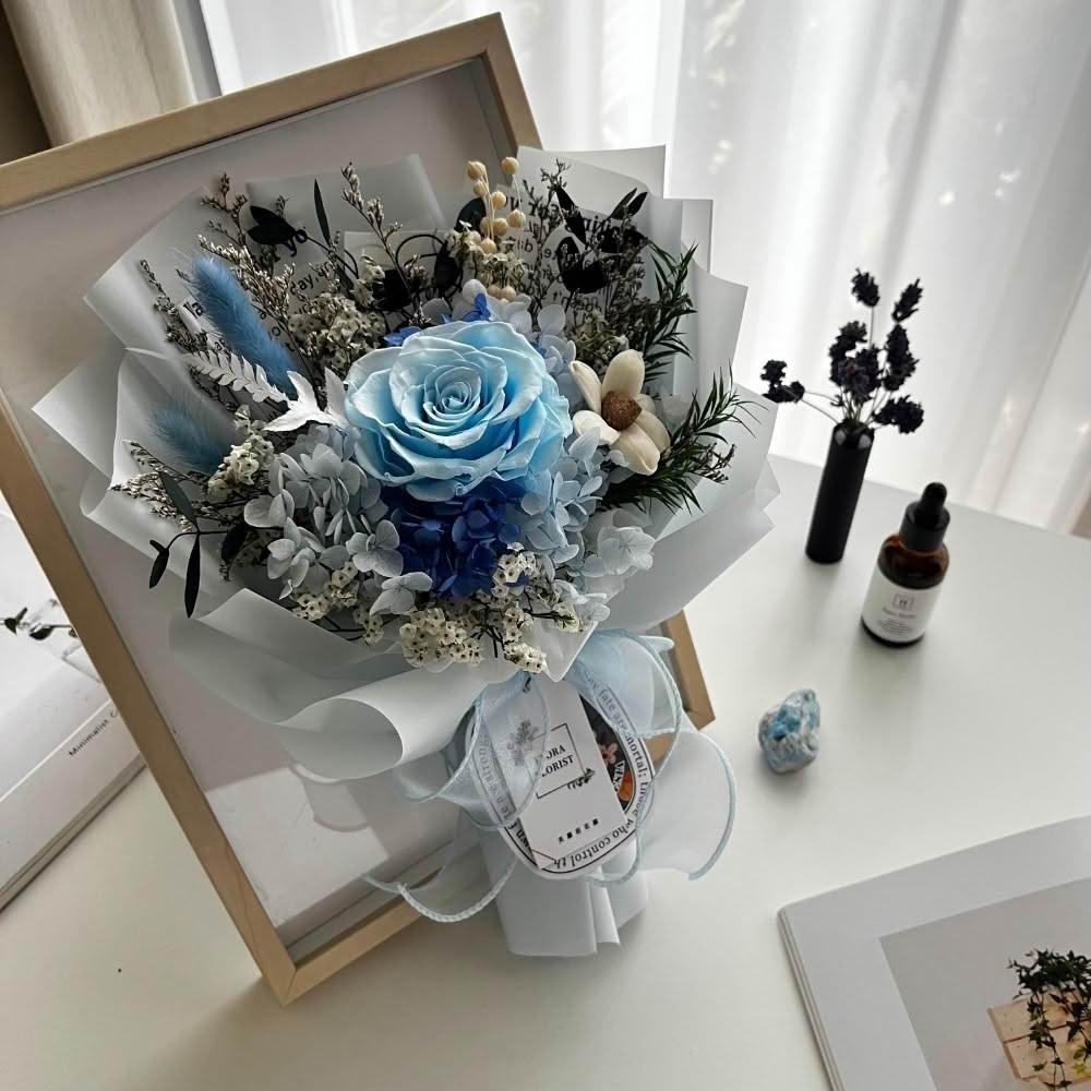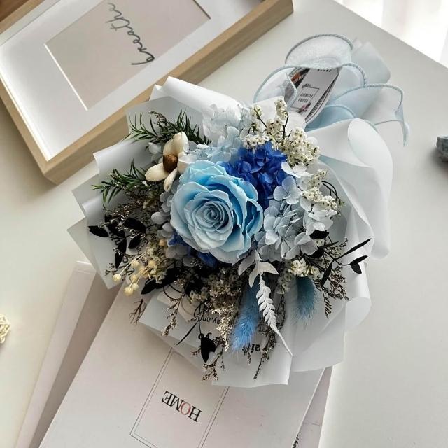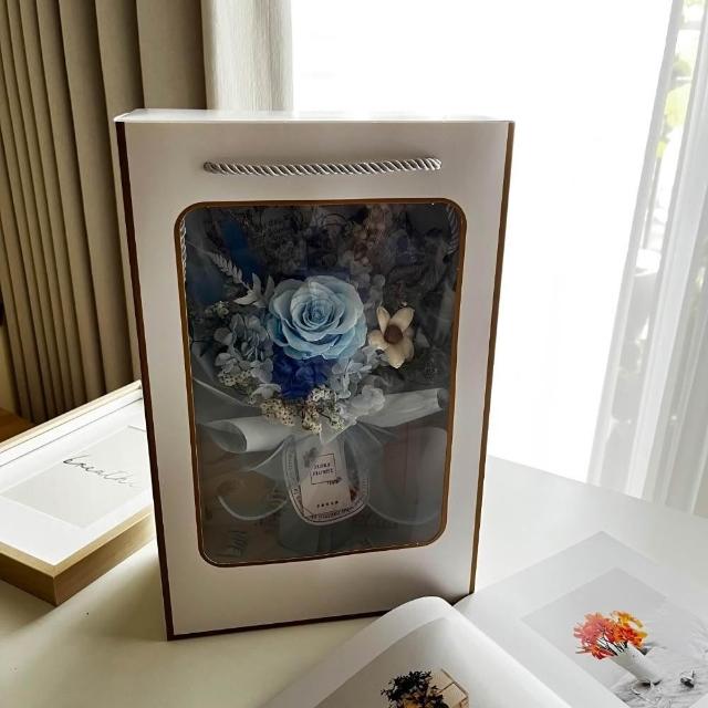 芙蘿菈花園|永生花束|經典款永生花束-藍玫瑰(附開窗提袋)