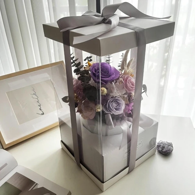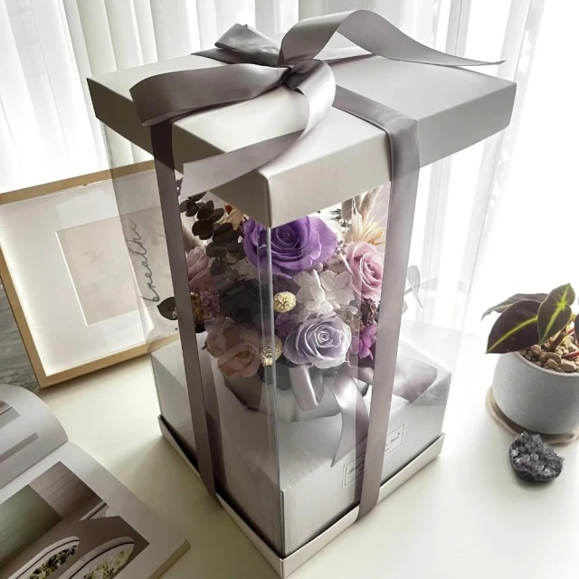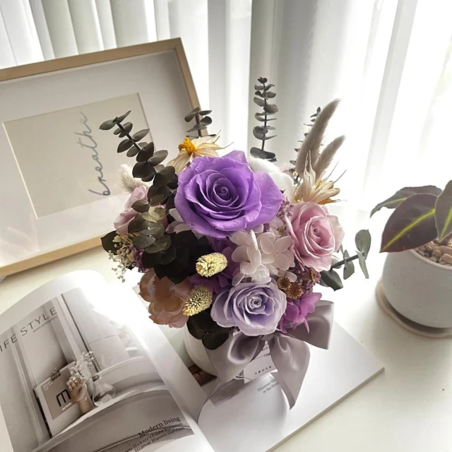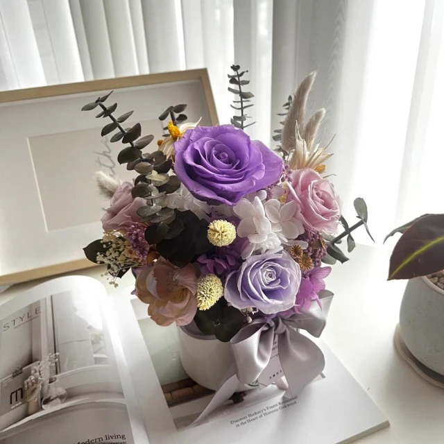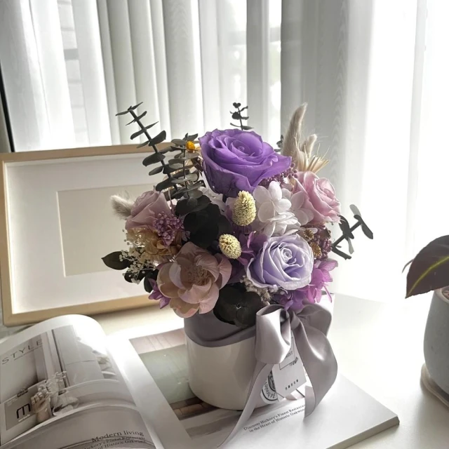 芙蘿菈花園|盆花|雅緻永生盆花.中-淡紫(附禮盒 提袋)-開幕送禮 新居賀禮