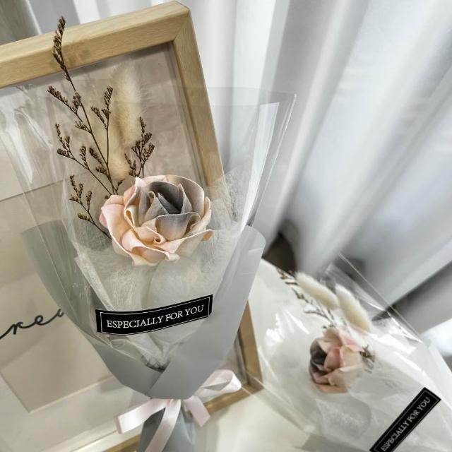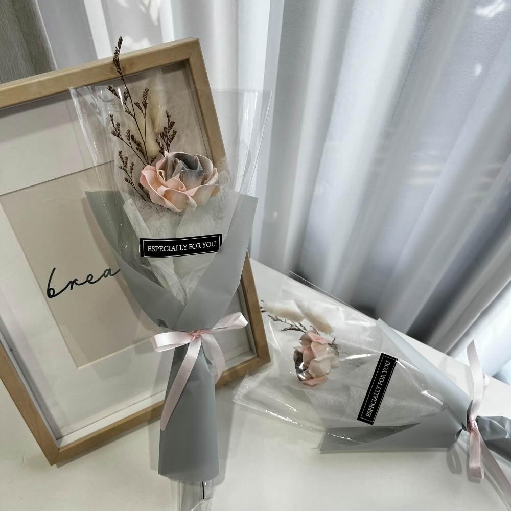 芙蘿菈花園|單朵花束|索拉玫瑰花-灰粉 (含透明提袋)