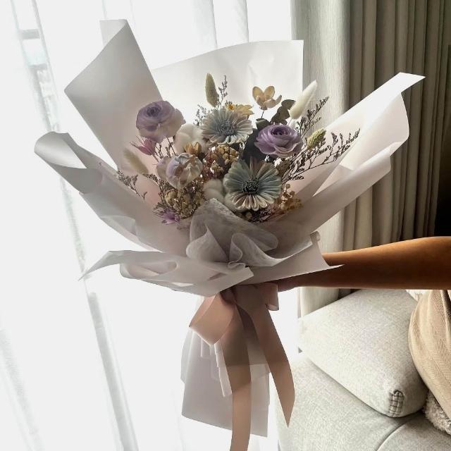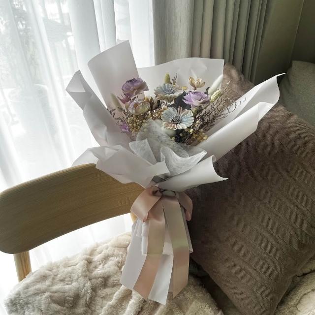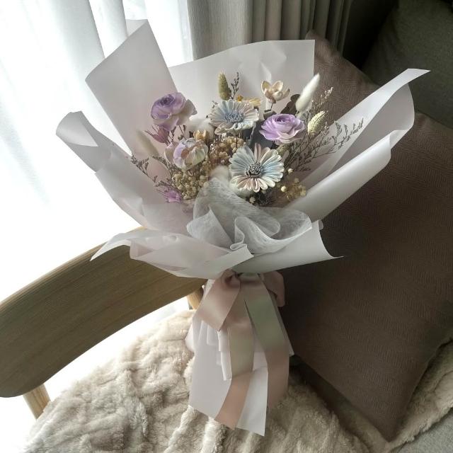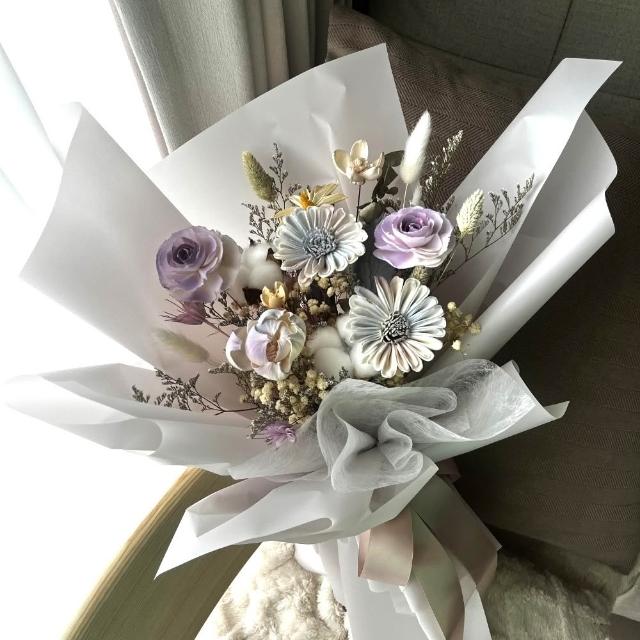 芙蘿菈花園|乾燥花束|索拉花乾燥花束-木槿煙紫(附提袋)畢業花束.乾燥花束.擴香花束