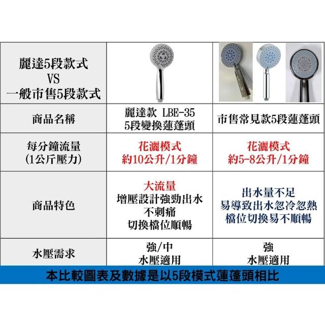 L.B.E 麗達蓮蓬頭 5段模式 LBE-35 大水量 5星飯店選用 高級矽膠孔 可自清 高級電鍍質感花灑