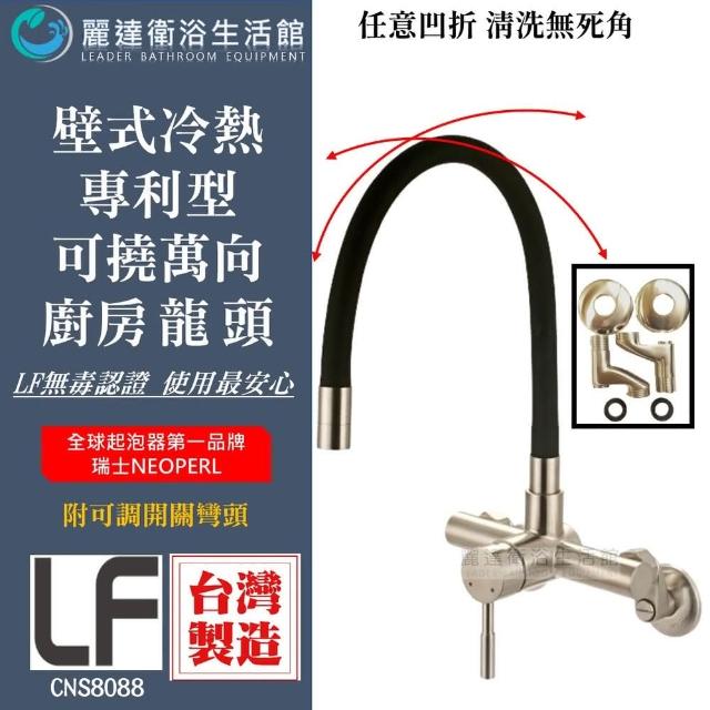 L.B.E 麗達台製 LF認證 廚房壁式龍頭 304不鏽鋼 專利可撓式 冷熱款 萬向水龍頭廚房龍頭 廚房水龍頭 萬向 壁式