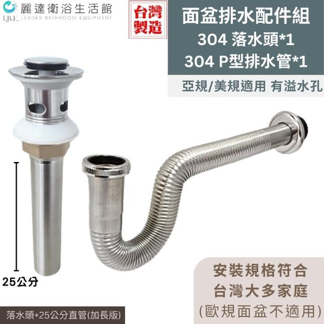L.B.E 麗達304 不鏽鋼 面盆落水排水組 落水頭直管25公分 加長版 P型排水304排水組