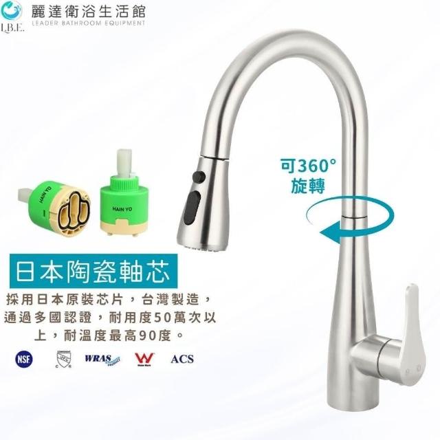 L.B.E 麗達台製 水龍頭 抽拉式水龍頭 伸縮水龍頭 兩段出水 加壓馬達適用日本陶瓷軸心 掛重式 紐珀起泡器