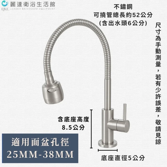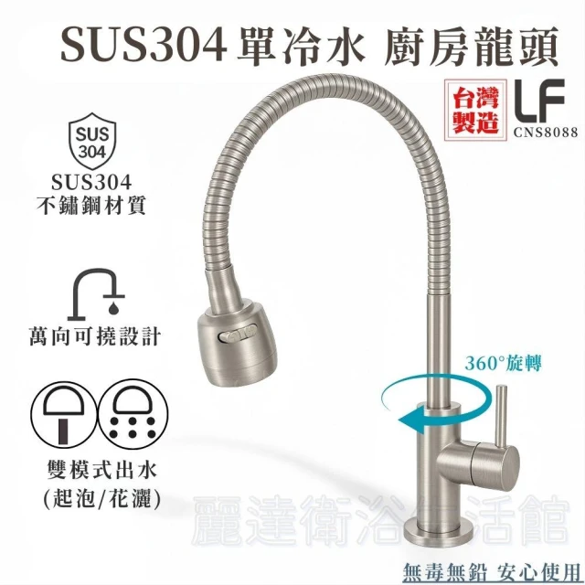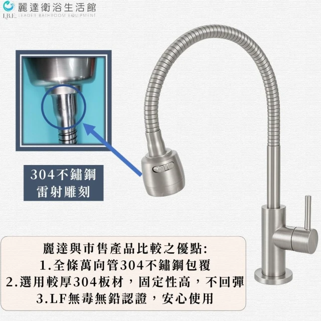 L.B.E 麗達台製 LF認證 水龍頭 廚房龍頭 單冷水龍頭 2段出水頭 304可撓管 可彎可固定 可撓式 萬向龍頭 ST-0056