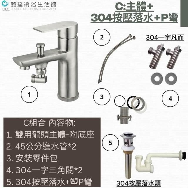L.B.E 麗達台製 304不鏽鋼 LF認證 單孔雙用 面盆龍頭 洗手 洗澡兩用 附大底座 ST622