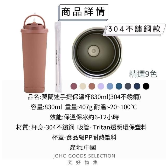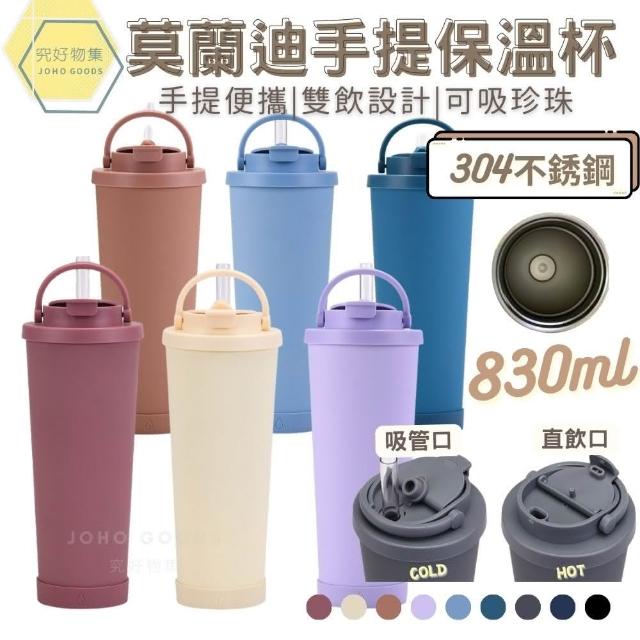 莫蘭迪手提保溫杯830ml 304不鏽鋼內膽 吸管保溫杯 環保杯 粗吸管 珍奶杯 保冰杯 冰霸杯