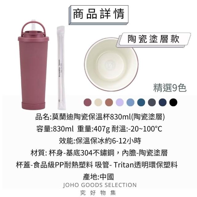 莫蘭迪陶瓷保溫杯830ml 附粗吸管 冰霸杯 吸管杯 環保杯 手提水壺 保冰杯 吸管杯 水壺 大容量)