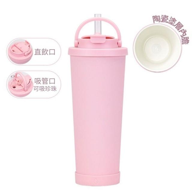 莫蘭迪陶瓷保溫杯830ml 附粗吸管 冰霸杯 吸管杯 環保杯 手提水壺 保冰杯 吸管杯 水壺 大容量)