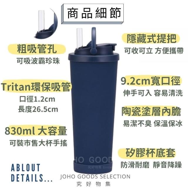 莫蘭迪陶瓷保溫杯830ml 附粗吸管 冰霸杯 吸管杯 環保杯 手提水壺 保冰杯 吸管杯 水壺 大容量)
