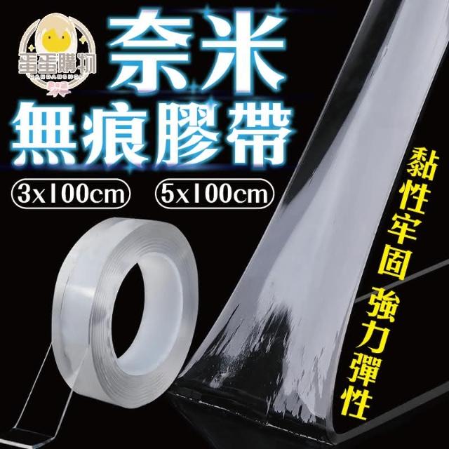 蛋蛋購物3x100cm款 加厚2mm 透明奈米壓克力雙面膠 雙面膠 強力無痕防水雙面膠 紅膜透明雙面膠帶(奈米膠帶 透明膠帶 無痕膠帶)