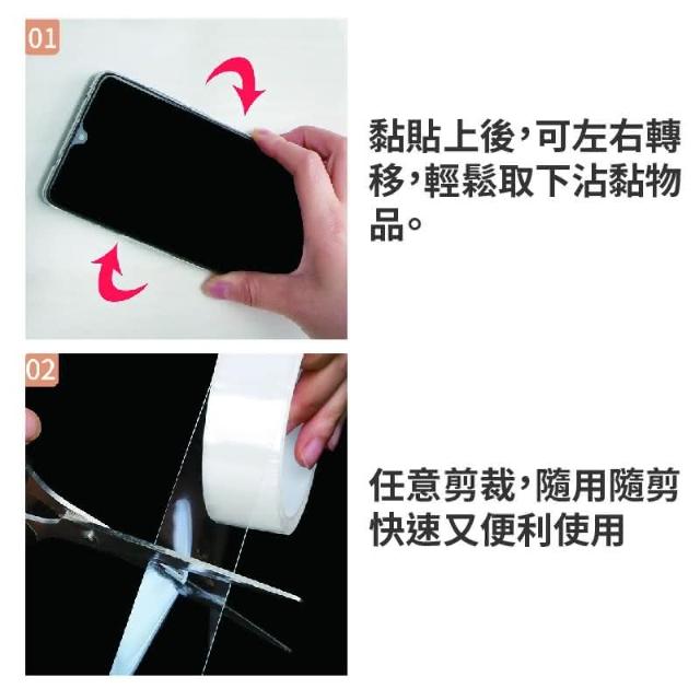 蛋蛋購物5x100cm款 加厚2mm 透明奈米壓克力雙面膠 雙面膠 強力無痕防水雙面膠 紅膜透明雙面膠帶(奈米膠帶 透明膠帶 無痕膠帶)