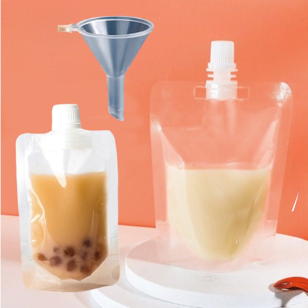 蛋蛋購物100ML款 分裝漏斗款 耐高溫一次性飲料袋 吸嘴袋 奶茶袋 飲料袋 果汁袋 站立袋 豆漿袋 食品包裝袋(奶茶外賣袋 自封食品袋)