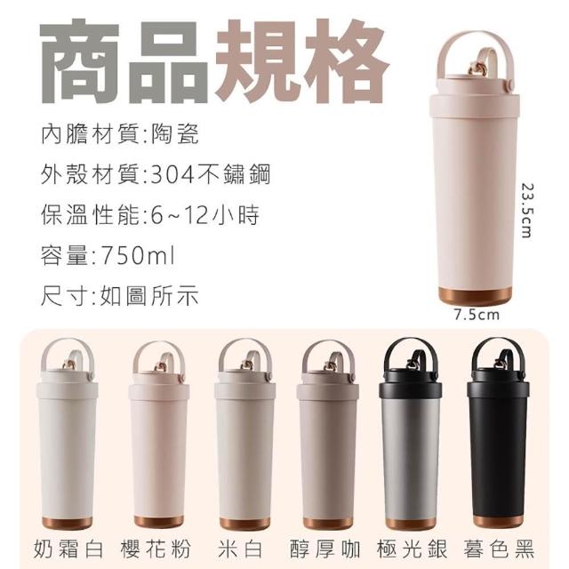 蛋蛋購物買一送一三飲陶瓷保溫杯750ml吸管組 ( 保溫瓶 保溫壺 環保杯 陶瓷杯冰壩杯 咖啡杯 吸管杯 隨行杯 保溫瓶 )