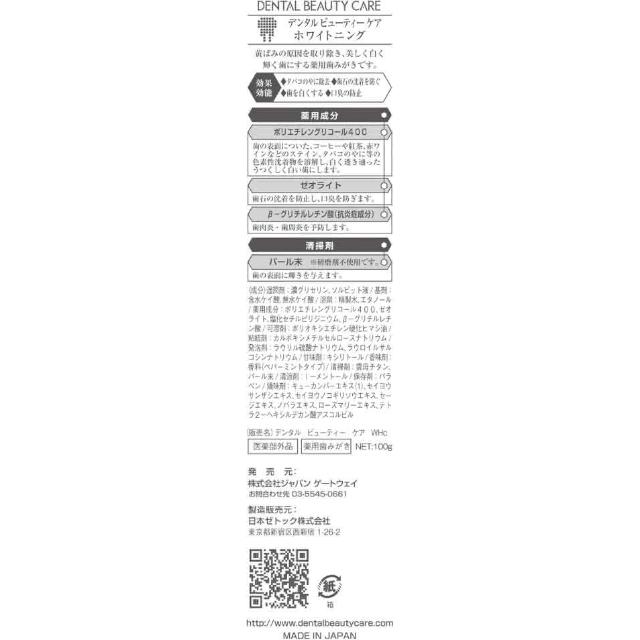 日本 潔白護理牙膏DENTAL BEAUTY CARE菸垢 牙膏 牙齒潔白