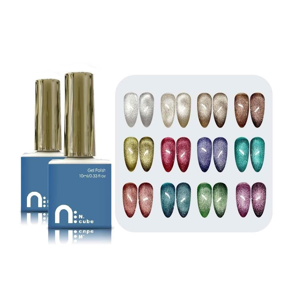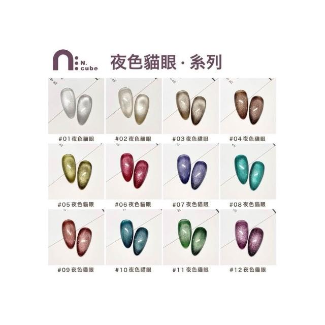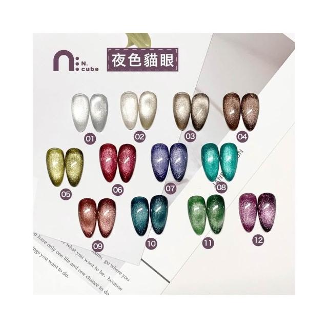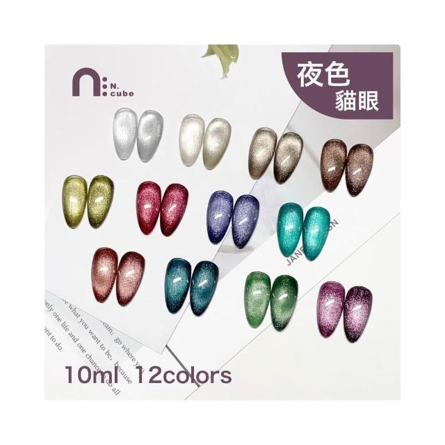 N.cube夜色貓眼 12色套組 10ml(色膠 美甲用品 美甲膠 中文標籤 美甲)