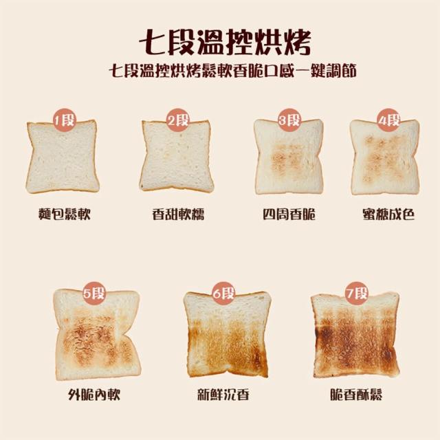 七段溫控,鬆軟香脆口感一鍵調節