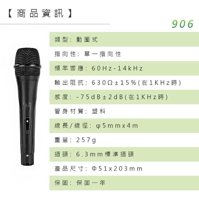 KINYO專業級!高感度動圈麥克風906 有線麥克風/家用卡拉OK、舞台用、專業廣播、錄音、會議、教學