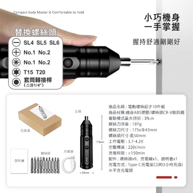 電動螺絲起子10件組工具組 工具包 螺絲起子 拆機工具 家用螺絲組 修繕工具 維修工具 螺絲工具組